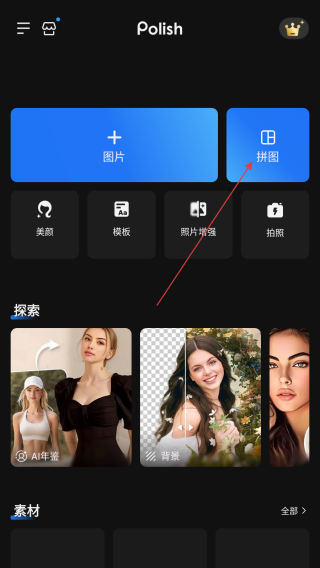 1、打開專業(yè)照片編輯器,點(diǎn)擊界面中的拼圖按鈕,進(jìn)入圖片選擇界面。