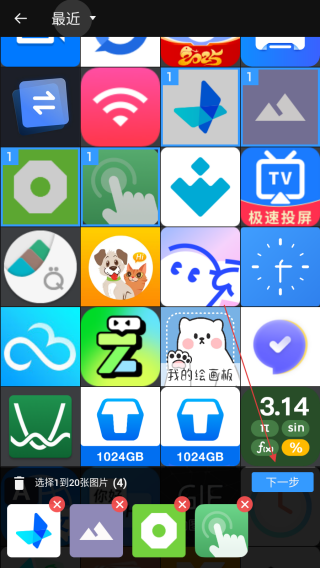 2、在圖片選擇界面,挑選需要拼接的圖片,選好后點(diǎn)擊下一步。