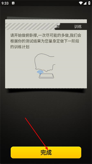 3、盡所能多做俯臥撐,完成后點擊完成,獲得量身定做的訓(xùn)練計劃。