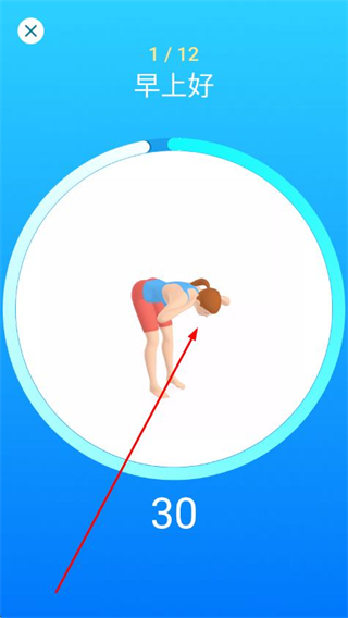 3、跟隨APP的動(dòng)畫指導(dǎo)進(jìn)行鍛煉,完成每個(gè)動(dòng)作的時(shí)長(zhǎng)要求。