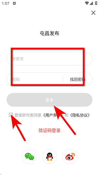 4、在密碼登錄界面,填寫手機(jī)號(hào)、密碼,勾選協(xié)議后點(diǎn)擊登錄,完成密碼登錄操作。