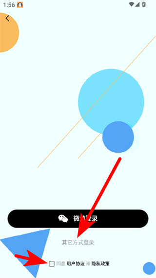 2、在登錄選擇頁面,勾選同意用戶協(xié)議和隱私政策后點擊其它方式登錄,進入賬號密碼登錄頁面。
