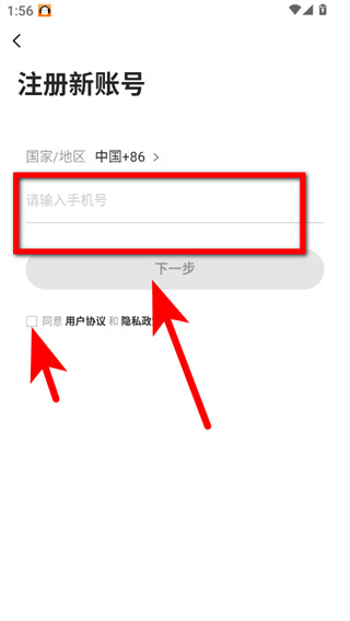 4、輸入手機號,勾選同意用戶協(xié)議和隱私政策后點擊下一步,按提示完成后續(xù)操作,即可完成注冊登錄。