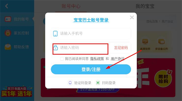 4、輸入密碼,點擊登錄/注冊即可完成賬號登錄。