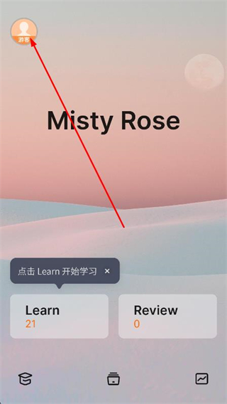 1、打開不背單詞APP,點(diǎn)擊左上角的游客頭像。