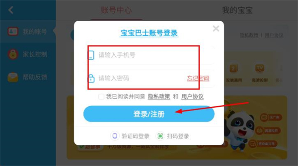 4、填寫賬號和密碼,點(diǎn)擊登錄/注冊,即可完成登錄操作。