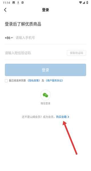 2、在登錄界面點(diǎn)擊“購(gòu)買會(huì)籍”,進(jìn)入成為會(huì)員頁(yè)面。