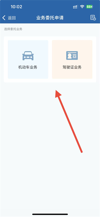 3、進入業(yè)務(wù)委托申請頁面后,根據(jù)個人選擇委托業(yè)務(wù)類型。