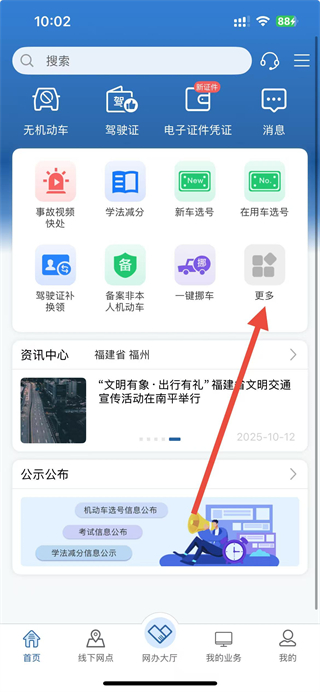 1、在交管12123app首頁點擊更多選項,進入業(yè)務(wù)中心頁面。