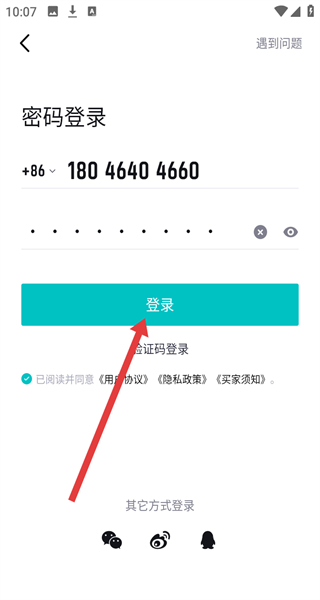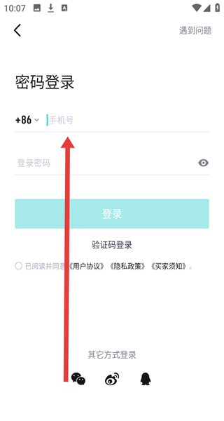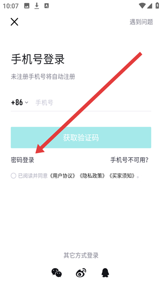 2、跳轉(zhuǎn)至手機(jī)號登錄頁面時,想要切換登錄方式,可以點(diǎn)擊密碼登錄按鈕進(jìn)行切換。