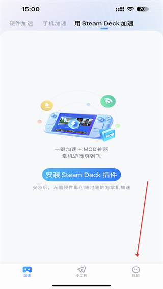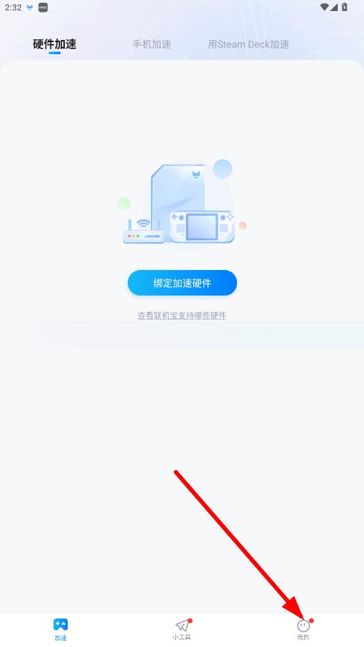 1、打開奇游聯(lián)機(jī)寶app,點(diǎn)擊底部導(dǎo)航欄中的我的選項(xiàng)。