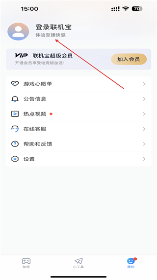 2、進(jìn)入我的頁(yè)面內(nèi),點(diǎn)擊上方登錄聯(lián)機(jī)寶的按鈕。