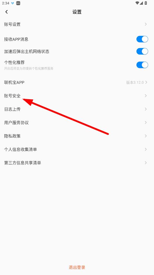 3、進(jìn)入設(shè)置頁面后,點(diǎn)擊賬號(hào)安全選項(xiàng)。