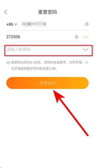 3、設(shè)置新密碼,點擊重置密碼,即可完成密碼找回操作。