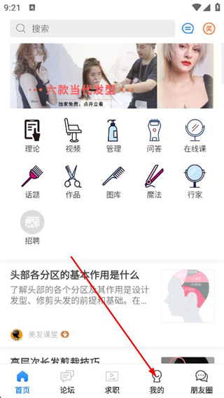 1、打開美發(fā)課堂app,點(diǎn)擊底部導(dǎo)航欄的我的選項(xiàng)。