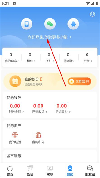 2、在我的頁(yè)面中,點(diǎn)擊上方的區(qū)域,進(jìn)入登錄頁(yè)面。