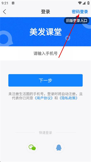 3、在登錄頁(yè)面中,找到并點(diǎn)擊右上角密碼登錄選項(xiàng)。