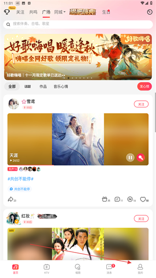 1、打開唱吧k歌的APP,進入時點擊我的圖標。