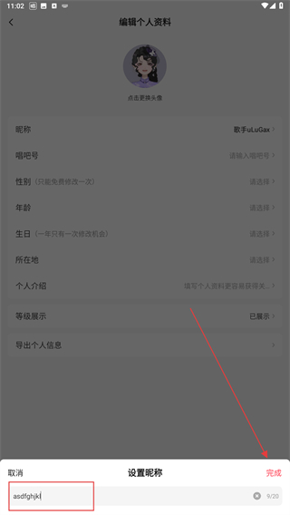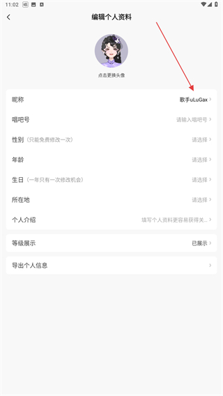 2、在編輯個人資料中,用戶需找到并點擊唱吧號,位于昵稱下方。