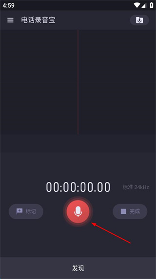3、返回主界面,點(diǎn)擊紅色麥克風(fēng)圖標(biāo),開(kāi)始錄音。
