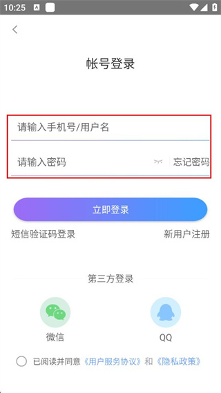 3、進入帳號登錄頁面,輸入手機號/用戶名和密碼。
