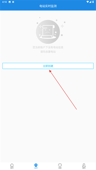 2、進(jìn)入電站實(shí)時(shí)檢測(cè)的頁(yè)面內(nèi),點(diǎn)擊立即創(chuàng)建的功能按鈕。