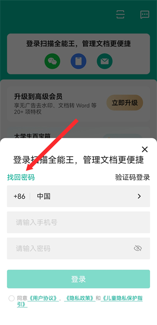 3、在登錄的選項(xiàng)中,我們需要找到并且點(diǎn)擊找回密碼的選項(xiàng)。