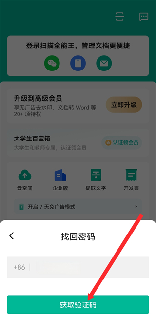 4、進(jìn)入頁面輸入手機(jī)號,點(diǎn)擊獲取驗(yàn)證碼,按照提示完成密碼找回操作。