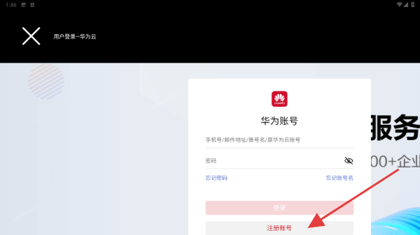 1、打開APP,未登錄的情況下,一開啟會直接進入登錄頁面,點擊頁面下方注冊賬號的按鈕。