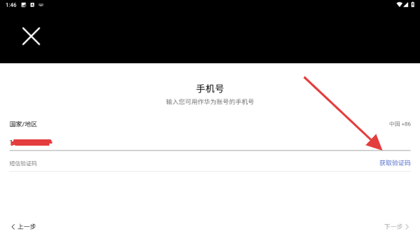 2、在注冊的界面內,輸入要注冊的手機號并點擊獲取驗證碼。
