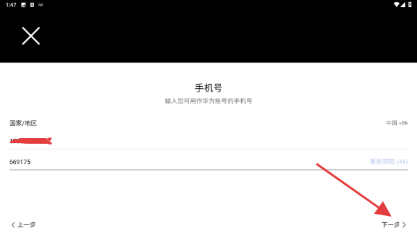 3、將收到的驗證碼的輸入進去,再點擊下一步的按鈕。