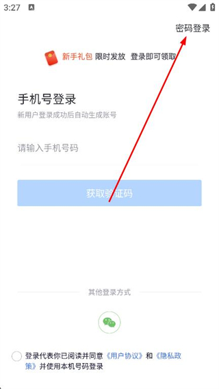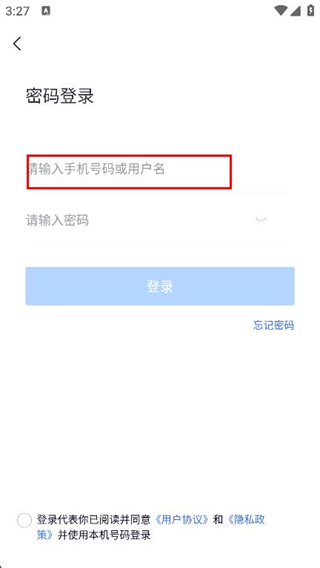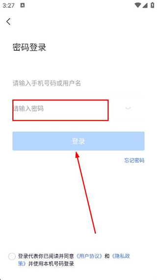 2、在密碼登錄頁面,輸入手機(jī)號(hào)碼或用戶名。
