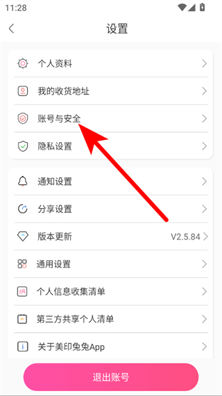 3、在設(shè)置頁面點(diǎn)擊賬號(hào)與安全,進(jìn)入賬號(hào)與安全頁面。