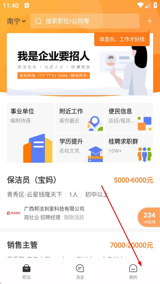 1、打開桂聘APP,進入首頁,點擊底部導(dǎo)航欄中的我的。