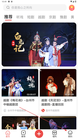 1、打開爆米花視頻的APP,進(jìn)入首頁點(diǎn)擊我的圖標(biāo)。