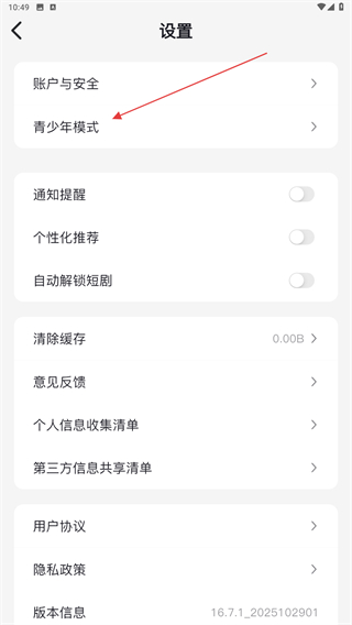 3、在設(shè)置的頁面內(nèi),找到并點(diǎn)擊青少年模式。