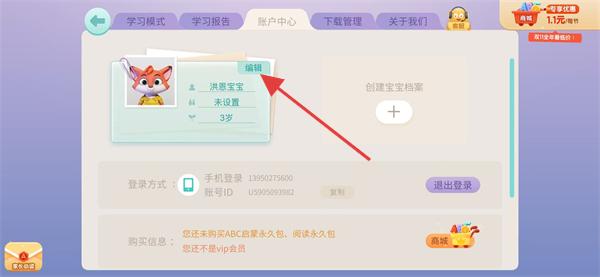 3、進入賬戶中心頁面后,找到并點擊編輯按鈕。