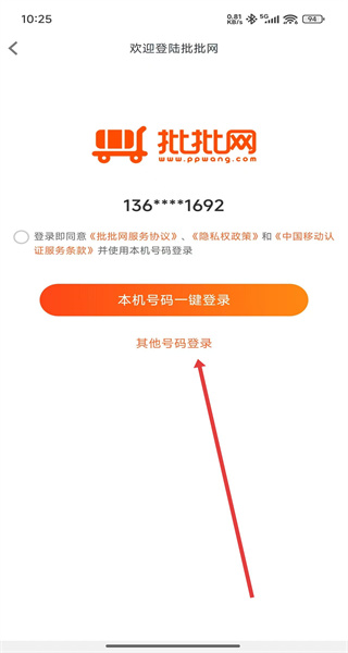 3、登錄選擇頁(yè)面點(diǎn)擊“其他號(hào)碼登錄”,進(jìn)入登錄/注冊(cè)頁(yè)面。