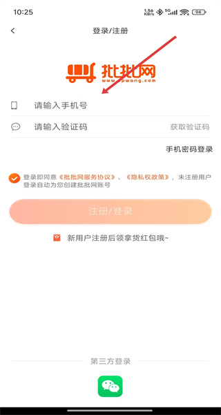 4、輸入手機(jī)號(hào)和驗(yàn)證碼,點(diǎn)擊“注冊(cè)/登錄”,完成賬號(hào)登錄操作。