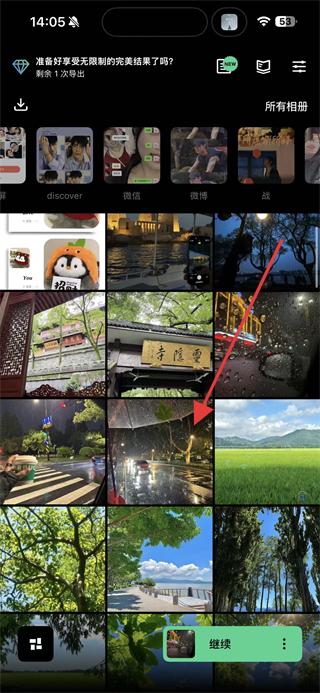 1、打開(kāi)TouchRetouch應(yīng)用,在相冊(cè)中選擇需要編輯的圖片,點(diǎn)擊繼續(xù)進(jìn)入編輯頁(yè)面。