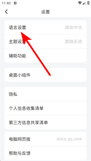 3、在設(shè)置的頁面,點擊語言設(shè)置的選項,進(jìn)入語言設(shè)置頁面。