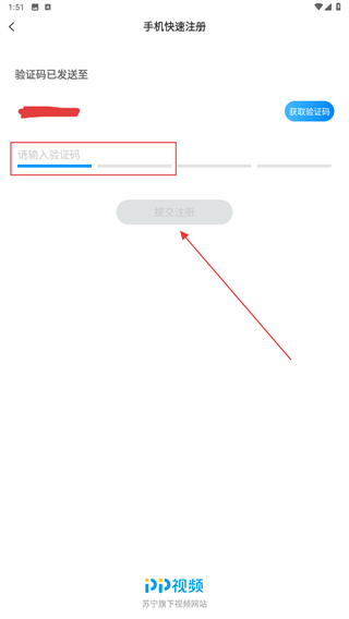 4、將收到的驗(yàn)證碼輸入進(jìn)去后,再點(diǎn)擊提交注冊(cè)按鈕。