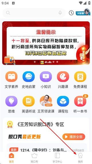 2、進(jìn)入APP首頁后,點(diǎn)擊底部導(dǎo)航欄中的我的選項(xiàng)。