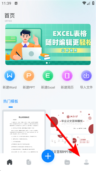 1、打開支持Word文檔的APP,點(diǎn)擊我的,進(jìn)入個(gè)人頁(yè)面。