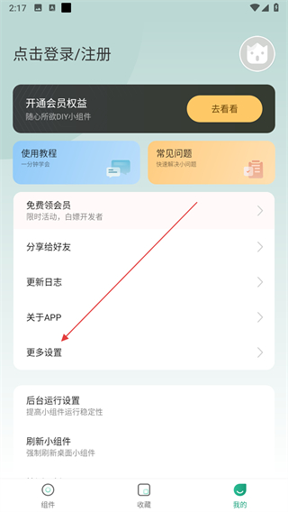 1、打開(kāi)萬(wàn)象小組件APP,點(diǎn)擊我的選項(xiàng)。