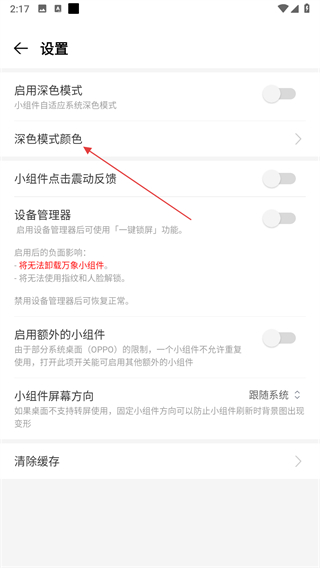 3、在設(shè)置頁(yè)面,點(diǎn)擊深色模式顏色選項(xiàng)。