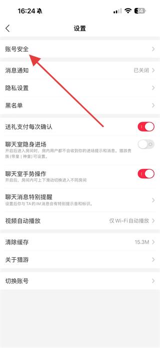 3、在設(shè)置頁面中找到賬號安全選項并點擊,進入管理賬號安全相關(guān)功能的頁面。