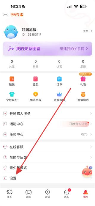 2、在個人頁面中找到設(shè)置選項并點擊,進入包含各類賬號配置的設(shè)置頁面。