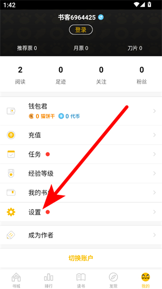 1、在刺猬貓閱讀書城頁面,點(diǎn)擊底部我的選項(xiàng),進(jìn)入個(gè)人中心頁面。