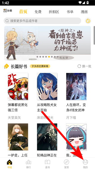 2、在免費(fèi)頁面瀏覽主編推薦、熱書等分類下的免費(fèi)小說,找到感興趣的作品。